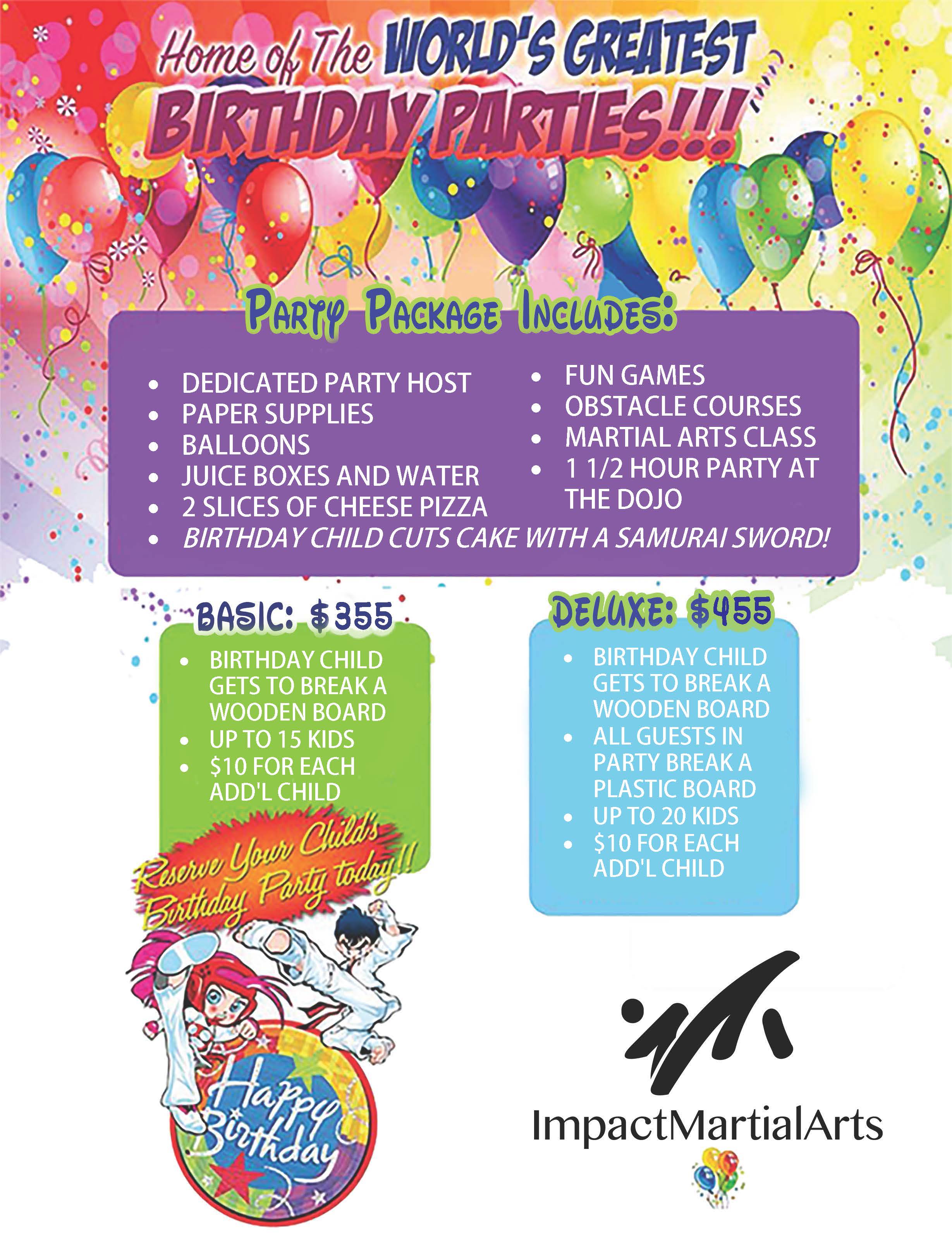 At Westchase Impact Martial Arts, planning your child's birthday has never been easier!